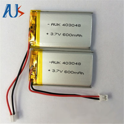 Bateria de polímero de lítio AUK 403048tensão nominal de 3,7 V, tensão de carga de 4,2 V, capacidade nominal de 600 mAh;